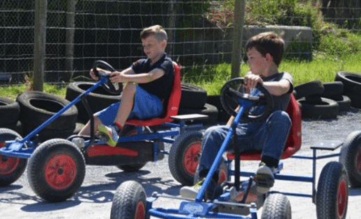 Hop onto pedal go-karts for a fun ride around the farm, or enjoy a scenic trailer ride through the park.